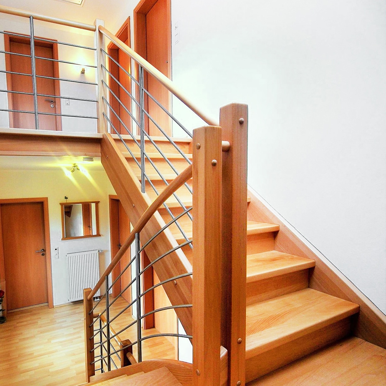 Unsere Treppenbau-Firma fertigt geschlossene Massivholztreppen individuell nach Ihren Wünschen. Ob klassisch, modern oder zeitlos – jede Treppe wird aus hochwertigen Hölzern wie Eiche, Buche oder Esche hergestellt. Die geschlossene Bauweise sorgt dabei für einen harmonischen Gesamteindruck, unterstreicht die Stabilität.